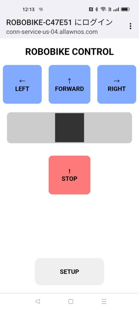 ROBOBIKEは、搭載するマイコンが内蔵するWiFi通信機能を活用し、スマートフォンから直接操縦できます。 ROBOBIKE本体が自らWi-FiアクセスポイントとなってWebサーバーを立ち上げ、スマホを接続するとすぐに操作画面が表示されるので、専用アプリは不要です。i-Phone、Android、いずれでもまったく同じ操作性が実現されました。
