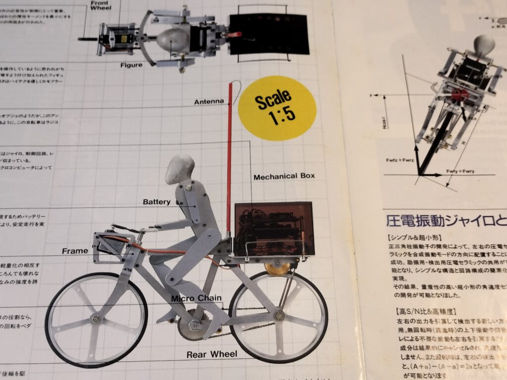 1990年代、「振動ジャイロ」が登場し、コマが回転する従来のジャイロに比べて小型・高感度・高速応答を実現。ビデオカメラの手振れ補正やラジコンヘリの安定化に活用されました。そしてROBOBIKEの開発者の手により、振動ジャイロを活かした世界初の自転車型ロボット、初代ムラタセイサク君が開発されました。