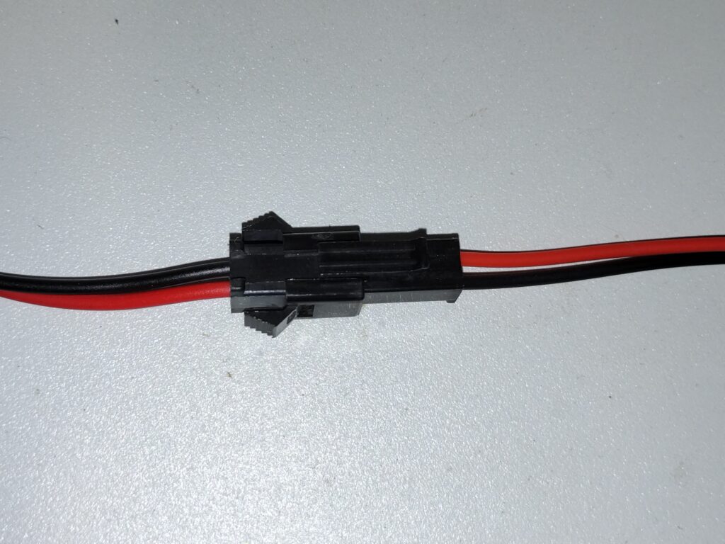 コネクタを基板から出ている電源ケーブルの先のコネクタに差し込んでロックが掛かるところまでしっかり差し込んでください。逆向きに挿すことはできない形状になっていますが、無理に挿してプラスマイナスを逆接すると、大電流が流れて回路を焼損する危険があります。