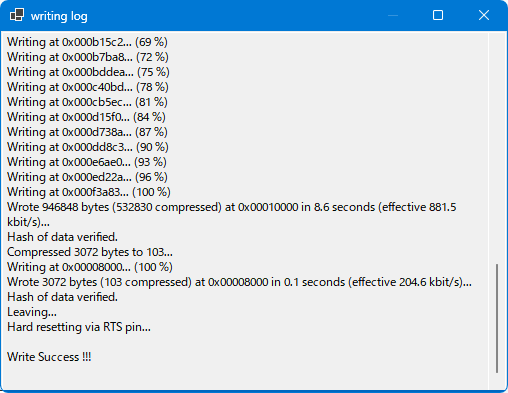 - Write Success の表示が出たらROBOBIKEの電源をOFF、ケーブルを外す