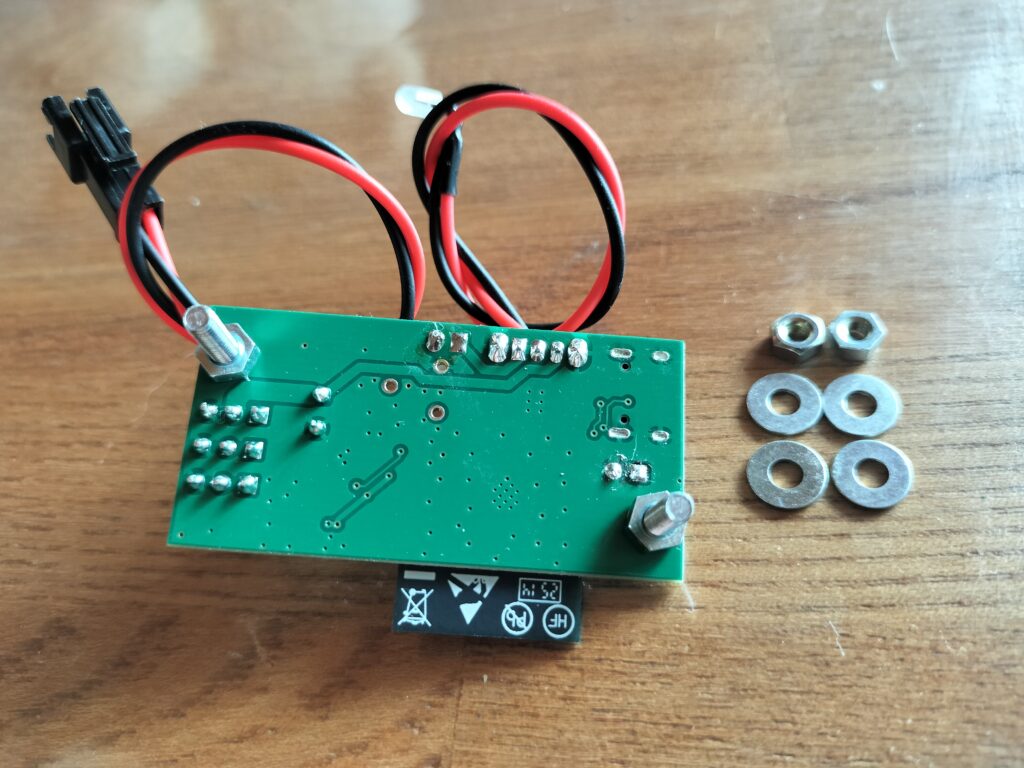 ビスと基板がキットの段階で取り付け済みになっているバージョンでは、フレームの穴にビスを差し込んで両側にワッシャを挟み、ナットをかけて締め付ければOKです。